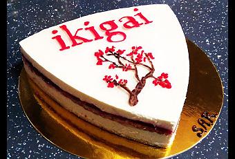 Pastel realizado y entregado al escritor barcelonés Francesc Miralles, el pasado 23 de abril (Sant Jordi), durante la firma de su último libro Ikigai. Representación en Chocolate de la portada del libro.