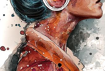 "Me encanta combinar dibujo a mano alzada y diseño gráfico digital. Gravita a las acuarelas y tiene un efecto maravilloso. Me encanta experimentar con diferentes técnicas "y siempre reviso las novedades en el mundo del diseño".