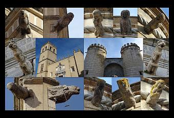 Sentenciada a ser plaza fronteriza desde que en ella misma fuese firmado en 1.267 el Tratado que llevaría su nombre, prolongando la Raya que dibujaba los límites trazados en Zamora un siglo antes entre Portugal y León, convertidos con las centurias en la frontera más antigua de Europa, la ciudad de Badajoz acataba su valor estratégico impregnándose de aire castrense su propia fisonomía municipal, respondiendo tanto su urbanismo como el trazado de sus monumentos a tales exigencias militares presentándose como obras recias donde el ornato cede paso a la robustez, impregnadas aun así del gusto artístico de cada época que las viese nacer, preservado en limitados detalles supervivientes más que del paso del tiempo de las ofensivas bélicas soportadas por la población, incrementándose así el valor histórico-artístico con el testimonial en elementos tales como las doce gárgolas conservadas en la ciudad, asomadas desde la torre-campanario de la Catedral Metropolitana de San Juan Bautista así como desde la Puerta de Palmas, características estas últimas por surgir desde un edificio civil y no religioso ni particular saludando, conjurando o quizás advirtiendo a la población que a través del contiguo puente que supera el río Guadiana accedía por poniente al lugar. Badajoz. Siglos XV-XVI; estilos gótico y renacentista.