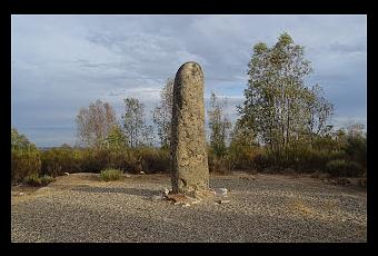 El 10 de julio de 1.985, la pasión por el arte y la arqueología llevaba a D. Fernando Tostado Granado a descubrir en las proximidades de su localidad de residencia uno de los escasos menhires con que cuenta la región extremeña y el Oeste peninsular, derrumbado por entonces y al parecer a raíz de los trabajos de desmonte a que fuese sometida la zona durante los años 40 del pasado siglo, volviendo a ser erguido, ligeramente desplazado de su punto de incisión original, en noviembre de 2.015 por el equipo del prestigioso arqueólogo D. Miguel Ángel López Marcos bajo programa de la Junta de Extremadura, luciendo hoy erecto un monumento, fálico según algunos autores, considerado según otras teorías con mayor respaldo una figura antropomorfa que marcaría primitivamente el enclave, delimitándolo o identificándolo, presentándose en todo caso como una de las presuntas representaciones escultóricas más antiguas de Extremadura.Alcántara (Cáceres). Fechado entre los periodos Neolítico y Calcolítico, alrededor del V milenio a.C..