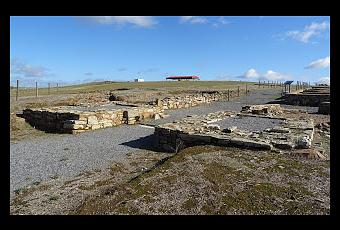 Arriba y abajo: de planta poligonal rectangular, dos torreones paralelos, de base de mampostería y posible alzado en tapial -manteniendo la estructura edilicia observada en el lienzo de muralla conservado junto a la torre septentrional (arriba)-, supondrían, junto al desaparecido arco de medio punto que los uniría, el diseño de la denominada Puerta Oeste de la ciudad romana de Contributa Iulia Ugultunia, defendiendo tales construcciones castrenses el paso occidental a la urbe, cuya abertura, de 3 metros de anchura, quedaría marcada por un umbral marmóreo inscrito en el terreno tras los sillares graníticos que supondrían el arranque de las jambas de la propia portada en sí (abajo, imágenes segunda y tercera), pieza arquitectónica en la que aún se aprecian los surcos ejecutados por el trascurrir sobre ella de los carruajes, así como las horadaciones para la inserción de las hojas de la puerta de cierre, reutilizada al parecer de alguna construcción previa e insertada en este punto de la ciudad durante las presuntas primeras obras de remodelación del enclave, fechadas antes de la segunda mitad del siglo III d.C., repavimentándose el firme del decumano máximo, cuyo trazado discurriría bajo este vano de control poblacional.