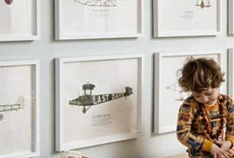 Para hoy un dormitorio infantil, presidido por una preciosa colección de laminas de aviones antiguos.