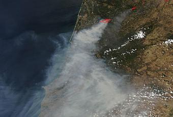 Imagen satélite (29.08.2013) de los incendios forestales en Portugal
