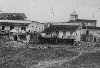 Vista desde el río al barrio San Juan en Sagua la Grande a finales del siglo XIX