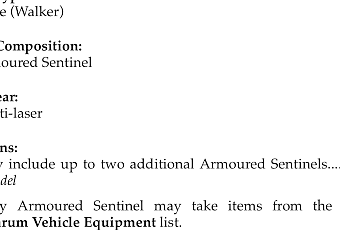 Ahora los Sentinels tienen mas Ataques que un Dread,por lo que veo.Será solo en España?Y unos atributos de que ni un Primarca Demonio.Espero que no,porque eso lleva aparejado Liderazgo 1....