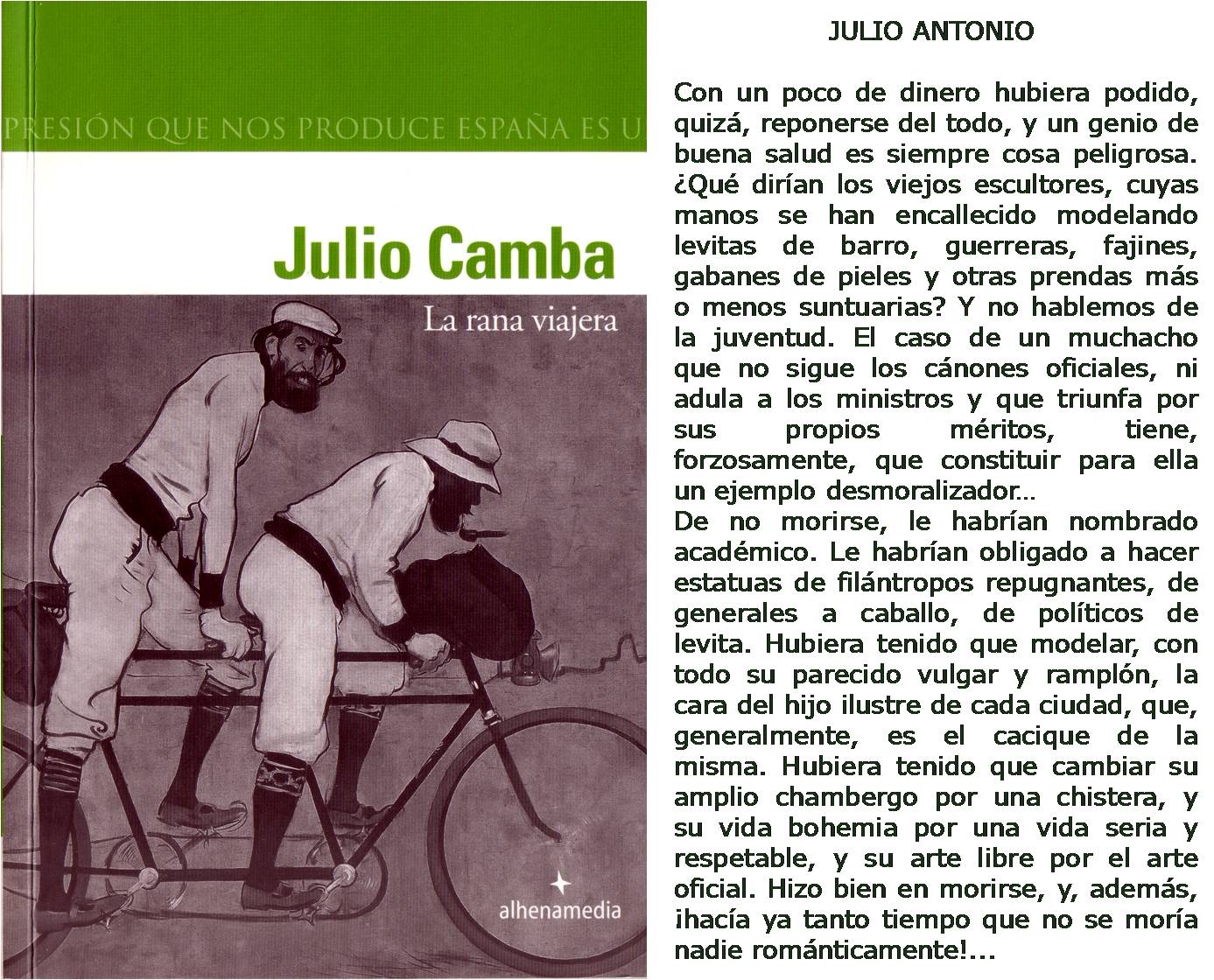 En "La rana viajera", JULIO CAMBA hace referencia al escultor JULIO ANTONIO y al mismo tiempo su obra está ilustrada con la reproducción de un cartel de RAMÓN CASAS.