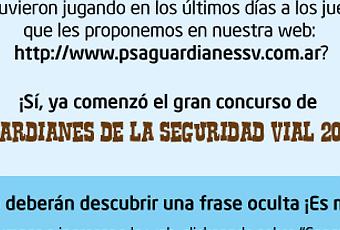 A través del sitio psaguardianessv.com.ar, PSA propone juegos sobre el tema con el objetivo de generar conciencia y a la vez participar del concurso “Un mensaje divertido y sustentable para todos”. Durante diez días, los alumnos, con el apoyo de los directivos, trabajarán sobre las consignas propuestas que les permitirán aprender las normas de seguridad vial. Los ganadores del concurso obtendrán como premio una computadora para la institución a la que pertenecen y una charla sobre movilidad sustentable realizada por especialistas.