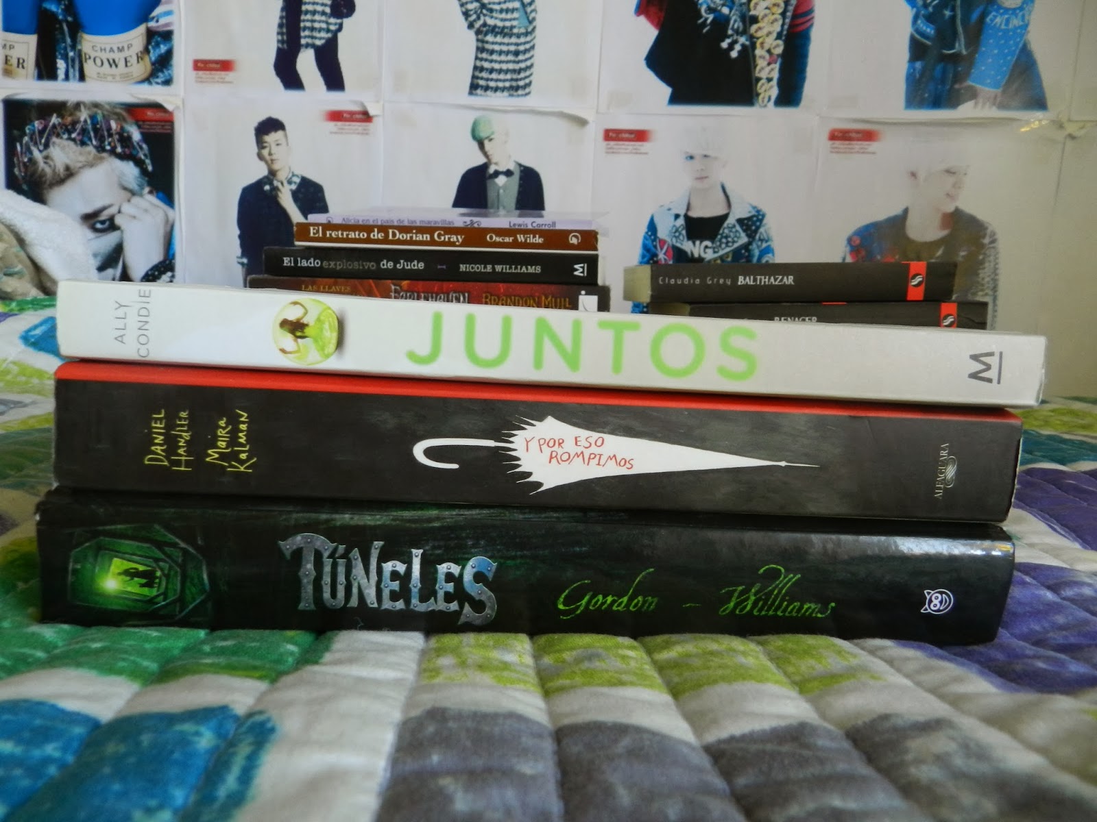 En el quinto grupo, y por fin terminando (me quiero ir a la pileta, hace mucho calor ;_;) tenemos El Grupo Rejunte. Juntos #1: Juntos se lo compré a Marti, y la reseña está hecha, aunque aún no la publiqué. Me gustó mucho más de lo que pensé que me iba a gustar, muy a mi pesar por las reseñas negativas que vi xD pero pienso seguir leyendo la trilogía. Y por eso rompimos lo compré principalmente por la edición que es hermosa-preciosa-divina, aunque el libro me gustó hasta ahí. Ya lo van a ver en la reseña, que publicaré dentro de poco, pero la verdad es por lo único que voy a conservarlo es por la edición hermosa. Por último, Túneles #1: Túneles, que fue uno de mis regalos de Navidad. Aún no lo leo pero por fin tengo el libro, porque siempre encontraba del 2 al 5 en las librerías, nunca el primero ;_; ahora, si me gusta, espero que no desaparezcan de la nada el resto de los libros, porque es algo que suele suceder en Argentina ;_;Ahora me voy a la pileta, que acá hace un calor de morirse ;A; los leo a la noche, cuando vuelva a devolverles los comentarios de la entrada anterior ♥