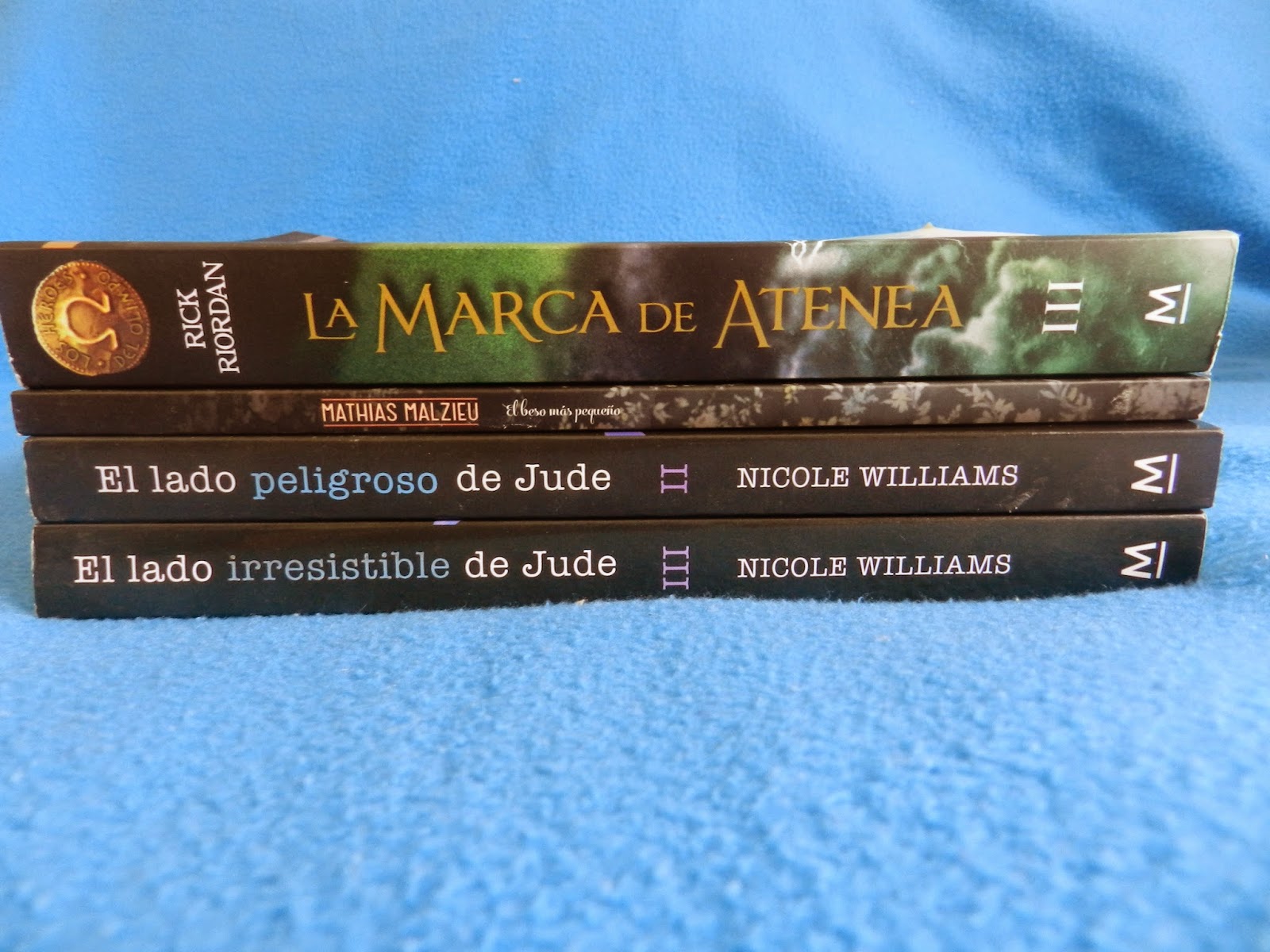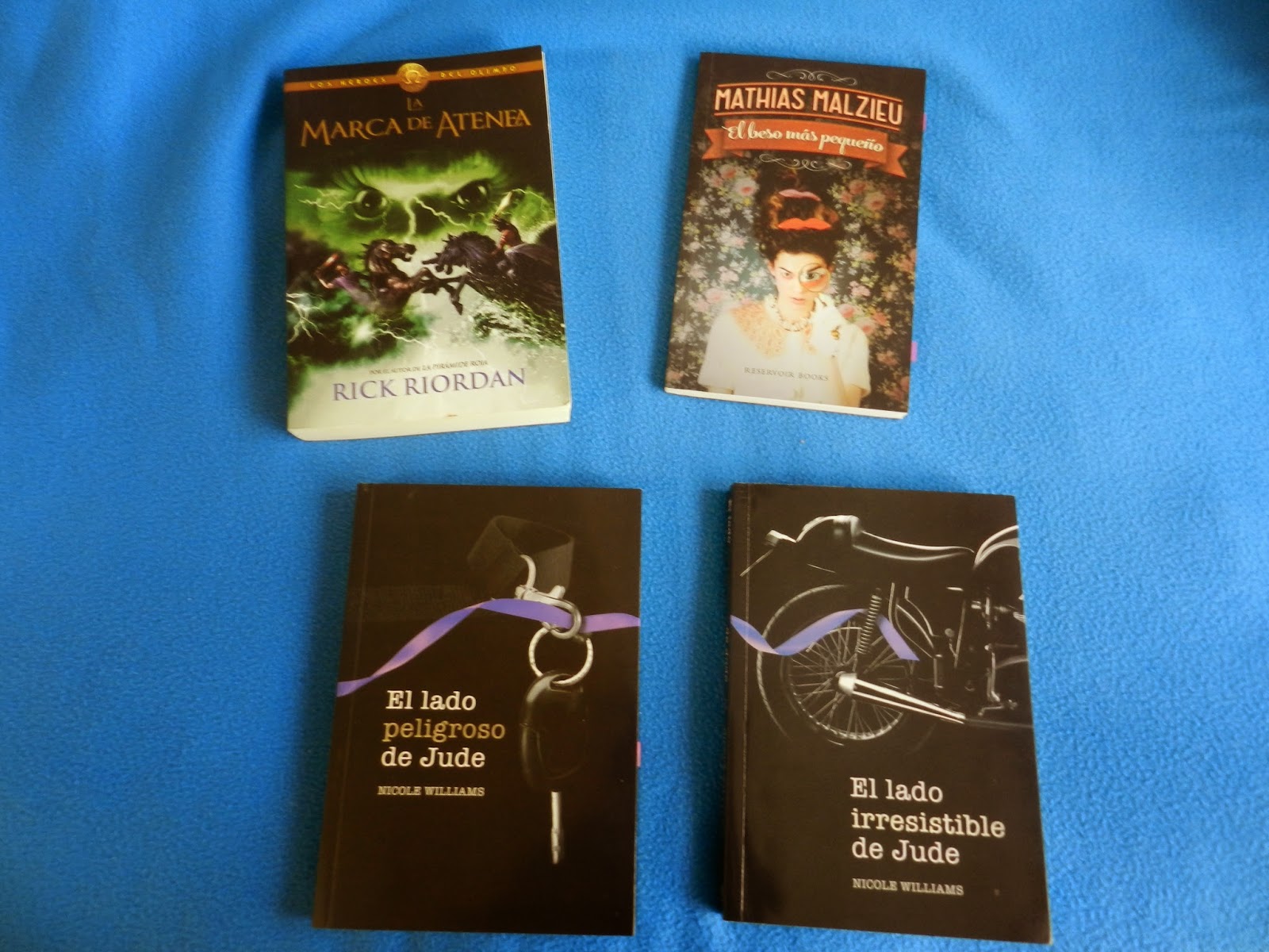 Del primer grupo están todos leídos excepto el de Riordan; de todas formas no lo voy a leer en un corto plazo porque fue un envío sorpresa de la editorial, y yo aún no terminé la saga de Percy ;A; así que este año voy a ahorrar para comprármelo. El lado peligroso de Jude ya está reseñado (click acá). Los otros dos están leídos y la reseña hecha, falta su publicación.