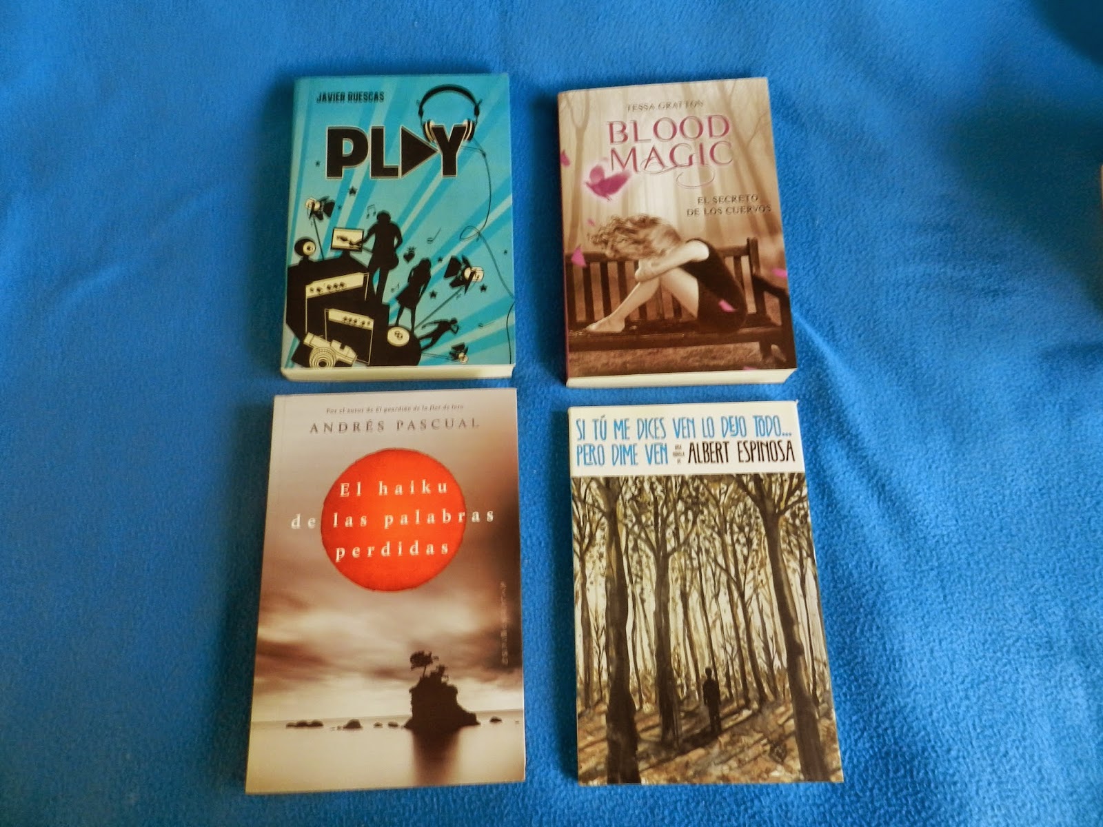 El segundo grupo se conforma de compras y regalos. El secreto de los cuervos y PLAY fueron regalos de mi tía (el primero para mí por haber terminado el colegio y el segundo para mi hermana -aunque tengo planeado leerlo ahora que está en mi biblioteca- porque está en el último año ¿creo?). Si tú me dices ven lo dejo todo... pero dime ven y El haiku de las palabras perdidas los había encargado en mi librería favorita y tenía que comprarlos sí o sí. Además dejé encargados otros diez, más o menos, así que estoy vendiendo libros que no entraron a mis favoritos para pagarlos T-T (ya vendí uno y me quedan cinco. Cinco libros para pagar diez. No sé cómo voy a hacer). No puedo esperar a leerlos todos :3