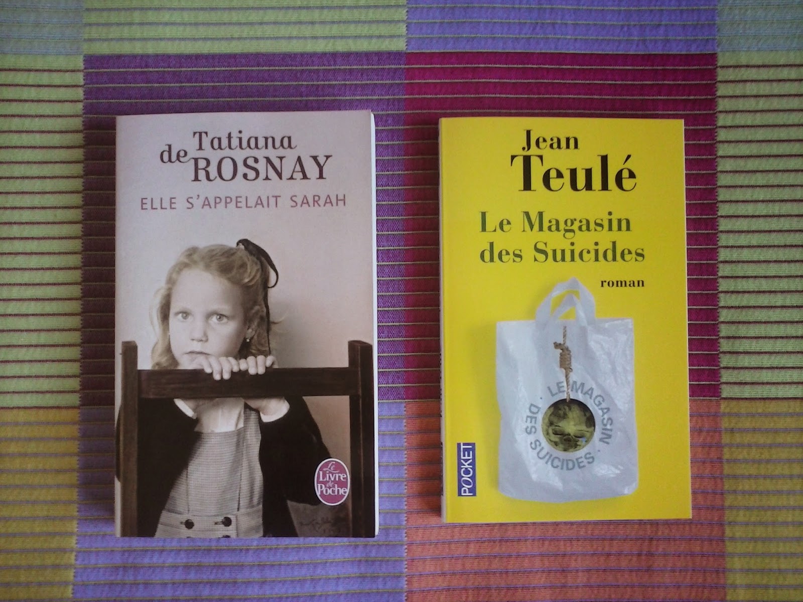 Elle s'appelait Sarah, de Tatiana de Rosnay. Le magasin des suicides, de Jean Teulé. Son las dos lecturas obligatorias para el curso de este año de francés. El primero ya lo he leído en castellano pero me encantará leerlo de nuevo en el idioma original. En cuanto al segundo no me llama especialmente la atención pero como es la decisión mayoritaria de la clase ... habrá que apechugar.