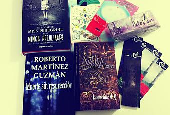 -Arriba a la izquierda podéis ver El hogar de Miss Peregrine para niños peculiares, de Ransom Riggs. Este libro lo tengo desde hace un tiempo, pero no podía enseñarlo ya que, como podréis comprobar, no se ha reseñado en el blog. Me llegó para hacer una en Off the record (podéis ir a la web de la revista AQUÍ), así que en el último número encontraréis mi opinión.-Abajo a la izquierda, está Muerte sin resurrección, de Roberto Martínez Guzmán. Ha habido un fallo de imprenta y por ello se ha impreso mal el título, pero podéis encontrar la portada correcta en internet, ya que siempre ha estado bien. Tengo muchísimas ganas de devorar el libro, y estoy segura de que me encantará, ya que la narrativa de Martínez Guzmán me parece muy atractiva. -Aelita y el poder de de Toney, de Jacqueline M.Q., es el último libro de este IMM. Al igual que a Roberto, le tengo que agradecer a Jacqueline el envío. Muy pronto traeré la reseña de estos dos libros.-A la derecha del todo tenéis unos marcapáginas preciosos de Otros Mundos, diseñados por Susy. Y arriba, más marcapáginas, pero en este caso de... ¡Noche de Palabras!-Encima de éstos podéis ver las postales navideñas que me han ido llegando: está la de Cris Lightwood, la de Vero y la de Aelita. ¡Muchas gracias, sois maravillosas!