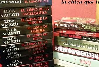 - El libro de Jade, El libro de la Sacerdotisa, El libro de la Elegida, El libro de Gabriel, El libro de Miya, El libro de la Alquimista, El libro de Ardan, El libro de Noah, El libro de los Bardos, El libro del Leder de Lena Valenti. Me encanta esta saga, y desde la editorial Vanir hicieron una muy buena oferta y como la quería tener en papel no dudé en comprarla.