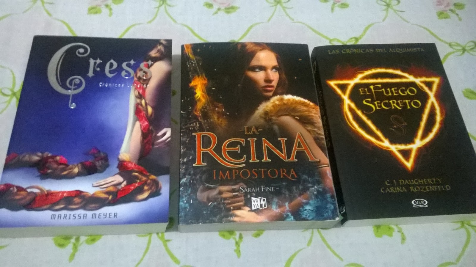 Cress - Marissa Meyer: Tercer libro de las Crónicas Lunares, libro que comenzaré prontito, la verdad que estoy re enganchada con esta saga, así que estoy muy ansiosa por empezarlo :PLa reina impostora - Sarah Fine: Libro ya leído y reseñado (pueden leerla aquí). Un fantasy muy entretenido y bastante original, le tengo mucha fe a la trilogía y espero ansiosa su continuación.El fuego secreto - C. J. Daugherty: La portada me llamaba mucho y espero leerlo pronto. Huele a magia, y eso me gusta XDOcéano