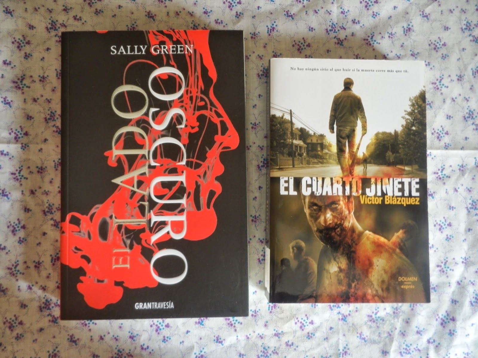 *fotito familiar*Tenemos a Donde termina el arcoiris, de Cecelia Ahern; El lado oscuro, de Sally Green; Hielo negro, de Becca Fitzpatrick; Insurgente, de Veronica Roth; El cuarto jinete, de Victor Blazquez y Perdona si te llamo amor y A tres metros sobre el cielo de Federico Moccia.