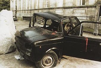 Impacto, Jorge Barreiro Xobaba, 1984En 1984 Wim Wenders estrenó París, Texas y ya debería ser suficiente. Por aquel entonces Galicia se enmarcaba entre el movimientotetiñas free y las ostias entre vecinos por centímetros de ferrado. Pero también ese año Jorge Barreiro Xobaba presentaba en la Bienal de Pontevedra Impacto, un coche empotrado contra un bloque irregular de granito. Galicia ha sido y es uno de los mayores centros mundiales de producción de granito, un material que labraban los canteiros principalmente para construcción o para talla de santos en iglesias y cruceiros. En los años ochenta, cuando se abrieron las ventanas, entró el conocimiento de otras realidades y lenguajes artísticos, muchos de los cuales fueron procesados por la Escuela de Canteiros de Pontevedra, verdadera canteira de artistas. Xobaba muestra ese choque de las nuevas formas, del nuevo arte.