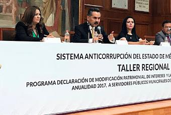 Toluca, Estado de México. Más de mil 200 servidores públicos municipales, adscritos a las siete regiones del Estado de México, asistieron a la conferencia sobre el Sistema Anticorrupción del Estado de México y Municipios (SAEMM), impartida por el titular de la Secretaría de la Contraloría de la entidad.De igual forma, participaron en los talleres en materia de Declaración de Modificación Patrimonial, de Intereses, y la constancia de Declaración Fiscal 2017, así como de Contraloría Social con enfoque en Blindaje Electoral.Los eventos tuvieron lugar en Chalco, Cuautitlán Izcalli, Tecámac, Ixtapan de la Sal y Toluca, donde el titular de esta dependencia expuso los alcances, implementación y consolidación del nuevo marco jurídico para combatir el fenómeno de la corrupción, incluyendo un espacio para responder las preguntas que pudiesen surgir entre los asistentes.De igual forma, los servidores públicos de la Secretaría de la Contraloría responsables de los temas relacionados con la Declaración de Modificación Patrimonial, de Intereses, y la constancia de Declaración Fiscal 2017, explican el procedimiento para cumplir con esta obligación a través del sistema Decl@raNET.En el caso de los asuntos relativos a la Contraloría Social con enfoque en Blindaje Electoral, los participantes son orientados para garantizar una gestión responsable y transparente del ejercicio público, mediante acciones de vigilancia y supervisión, fortaleciendo así la cultura de la legalidad.La serie de conferencias y talleres concluyó en la sede del Poder Legislativo, a invitación de la Contraloría del Congreso local, quien participó en la coordinación para la realización de dichos eventos.
