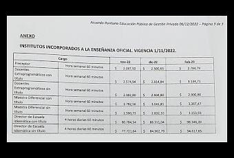 El Sindicato Argentino de Docentes Privados (SADOP) firmó con las Cámaras empleadoras de la educación privada un incremento salarial para el sueldo básico de las y los docentes incluidos en el artículo 18, inciso b) de la Ley 13.047 y que se desempeñan en los establecimientos privados de enseñanza comprendidos en el Artículo 2do de la misma.