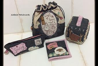 Un bordado en redwork para el aplique central y una casita de madera....ay, qué cuqui! Seguro que a las chicas que empiezan en clase, les va a gustar