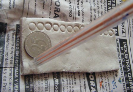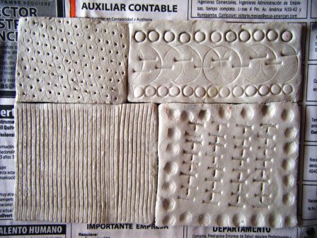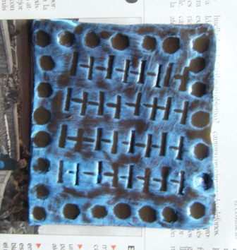 2.- A continuación se aplicará a las placas una técnica elemental de ENVEJECIDO para que se noten las texturas y con un procedimiento muy sencillo para que los niños/as lo puedan hacer.- Pintar con témpera espesa con un color claro.