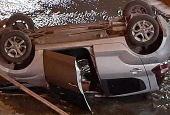 Impresionante accidente en El Cristo. Un vehiculo cayo en el canal sobre Camino del Peru, en el mismo iban 4 integrantes, los cuales salieron ilesos.