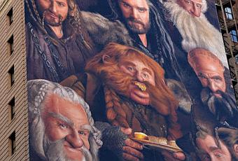En dos días es el estreno mundial de El Hobbit y me he encontrado con que Dan Cohen, Van Hecht-Nielsen, Eddie Garcia y David Osborne, componentes del Art Fx Team, han pintado este impresionante mural de 45 metros del cartel publicitario de la película en 315 Park Avenue South, en Nueva York. Sin duda es un mural contratado por la productora pero me ha impresionado enormemente la genialidad de los artistas para mantener las proporciones y ese inmenso realismo a golpe de brocha en una pintura de tal inmensidad, ¿donde están los límites? brutal!!!!