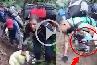 En las imágenes se observa cómo los migrantes que huyen de una posible deportación se ven obligados a subir a pie empinadas cuestas cargando consigo bultos, agua, comida y hasta niños pequeños.