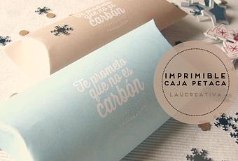 Esta caja, además lleva el mensaje que tanto ha gustado de nuestras etiquetas navideñas: "Te prometo que no es carbón". La tenéis en dos colores distintos: Marrón kraft y azul claro.