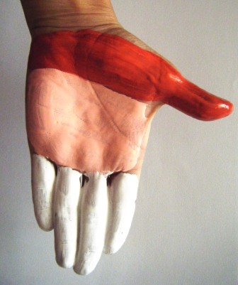 1.- Se pinta la palma de la mano con témperas según el esquema.