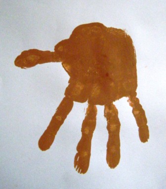 .a) Se imprime la la huella de la mano con los dedos hacia abajo, en color café claro.