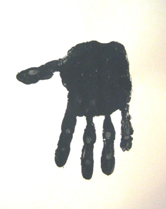 1.- Para el CUERPO:Se imprime la huella de la mano con los dedos hacia abajo, en color negro, como lo indica la imagen