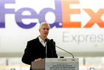 • Inaugura Gobernador mexiquense y Vicepresidente Senior de Operaciones para América Latina y el Caribe de FedEx Express, Julio C. Barrionuevo, nuevo recinto fiscalizado de FedEx, en el Aeropuerto Internacional de Toluca (AIT)