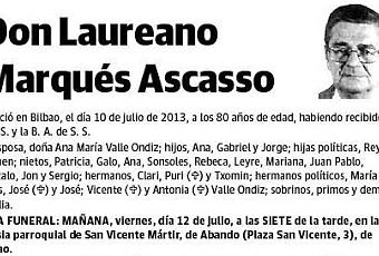Este es un recuerdo contado por algunos Seniors de SECOT, Miguel Arechavala, Eugenio Zabala y Angel Zaldumbide, que le han conocido más de cerca y de José Luis de Francisco y otros como yo, que solo estuvimos con él en ocasión de nuestras reuniones mensuales o en las comidas semestrales de SECOT Bizkaia, que solemos tener en la Sociedad Bilbaína.Laureano era Piloto de la Marina Mercante y ha trabajado en la Naviera Aznar hasta que, por motivos familiares, estimó que era conveniente lograr una mayor cercanía con la familia, y por ello, pasó a trabajar en la "antigua" Firestone, hasta su jubilación.Concluida su vida laboral activa, pasó a colaborar de forma voluntaria y desinteresada, con Gorabide, una asociación sin ánimo de lucro orientada a dar apoyo a las personas con discapacidad intelectual de Bizkaia, así como a sus familias y personas o entidades tutoras; en SECOT Bizkaia, colaborando en varias actuaciones; con el Colegio Mayor Bidealde, desarrollando labores administrativas; y en la Parroquia de San Vicente (Bilbao), participando en actividades varias, incluyendo Cáritas Parroquial, en la que llegó a ostentar su Presidencia. Mantenía una presencia importante asimismo en otras actividades varias, a lo que añadiríamos su atención al apartado familiar.Todos recordamos a Laureano como un caballero, educado, amable, de trato sencillo y correcto. “Era de esas personas que cuando dejas de hablar con ellas te das cuenta que has pasado un rato agradable. Me dio la sensación de haber sido un buen profesional y cuantas veces le oí hablar en las reuniones siempre lo hizo con gran sensatez”,recuerda José Luis de Francisco.