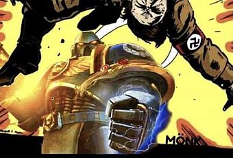 Fue a raíz del comunicado oficial de Games Workshop del pasado viernes, y que comentamos en esta entrada. Fue colgada en varios grupos de FB, y mezcla una de las clásicas imágenes del cómic del Capitán América arreando a Hitler, pero el que le arrea es un Ultramarine, sacado del vídeo-juego del mismo nombre, con un Puño de Combate. Muy buena y muy clarificadora.