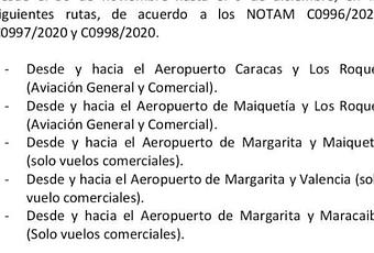 El Instituto Nacional de Aeronáutica Civil (Inac) confirmó este martes la reanudación de vuelos nacionales hacia la isla de Margarita desde los aeropuertos de Maiquetía, Valencia y Maracaibo a partir del próximo 30 de noviembre.