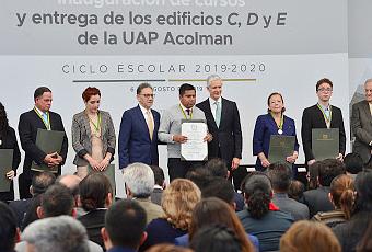 Acolman, Estado de México.- Al inaugurar los cursos del ciclo escolar 2019-2020 de la Universidad Autónoma del Estado de México (UAEM), el Gobernador Alfredo Del Mazo Maza dio la bienvenida a los más de 87 mil jóvenes que se integran a los programas de esta casa de estudios, y destacó que del total de alumnos un 57 por ciento son mujeres, por lo que reconoció el compromiso que tienen las estudiantes con su formación profesional.