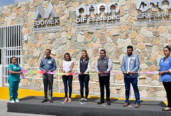 Ecatepec, Estado de México. La Presidenta Honorariadel Sistema para el Desarrollo Integral de la Familia del Estado de México (DIFEM), Fernanda Castillo de Del Mazo, inauguró el Centro de Rehabilitación Integral Zooterapia y Autismo, único en su tipoen territorio mexiquense que brinda tratamiento a niños y adolescentes con discapacidad y trastornos del neurodesarrollo con ayuda de perros, cuyos, conejos y caballos.El Centro de Rehabilitación Integral Ecatepec (CRIE) fue construido dentro de las instalaciones del Parque Ecológico Ehécatl, tiene una capacidad para atender a alrededor de 80 pacientes al día, desde recién nacidos hasta los 18 años, y su objetivo es mejorar las condiciones físicas e intelectuales de los pacientes mediante la zooterapia.La zooterapia es un tratamiento en donde los animales fungen como un instrumento entre el rehabilitador y el paciente, que permiteestimular la comunicación no verbal, la imaginación y percepción sensorial como el oído, el tacto y el olfato. Tal es el caso de la equinoterapia, donde se estimulan las zonas más receptivas y sensoriales del paciente como la columna y cadera a través del galope de los equinos.“Me da mucho gusto poner en marcha este centro que cuenta con un gran equipo humanoque está enfocado a atender a los pequeñitos de la familia con terapias profesionales e innovadoras que les permitirán pronunciar sus primeras palabras, caminar, convivir y demás beneficios para contribuir a su bienestar”, expresó Castillo de Del Mazo.En compañía de Miguel Ángel Torres Cabello, Director General del DIFEM; del Alcalde Indalecio Ríos Velázquez y de Tábata Rojas Muciño, Presidenta del DIF de Ecatepec, la titular del DIF mexiquense visitó las instalaciones, dentro de las cuales destaca la sala multisensorial para pacientes con espectro autista, la cual se suma a los servicios de odontología, trabajo social, medicina general, neuropediatría y medicina de rehabilitación, psicología y rehabilitación física.Cabe destacar que el centro, está enfocado a atender a pacientes diagnosticados con espectro autista, síndrome de Down, déficit de atención, parálisis cerebral, entre otros trastornos del neurodesarrollo.Asimismo, para fortalecer los servicios de este espacio, la presidenta honoraria del DIFEM hizo entrega de un equipo de Rayos X.