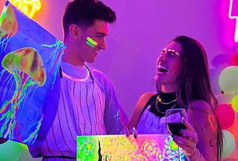 Los asistentes a la experiencia de Wine Gogh Neón podrán disfrutar de un momento único donde dejar volar su imaginación y crear una obra de arte con pinturas fuera de lo común, ya que son pinturas neones fluorescentes para crear obras especiales.