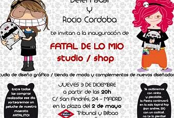 Mañana jueves 3 de diciembre abre sus puertas Fatal de lo Mío Studio Shop (c/San Andrés, 24) un espacio situado en el corazón del barrio madrileño de Malasaña, junto a la Plaza del Dos de Mayo, dedicado al arte y el diseño independiente donde se combina el estudio de diseño gráfico e ilustración con una zona de tienda dedicada a las marcas más destacadas del diseño emergente en forma de ropa, complementos, bisutería, toys...