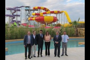 La presidenta de la Junta de Andalucía, Susana Díaz; el alcalde de Sevilla, Juan Ignacio Zoido, junto al presidente de Looping Group, Laurent Bruloy, han inaugurado oficialmente este jueves la nueva zona acuática del parque temático Isla Mágica, Agua Mágica, en la que se estima que unos 200.000 visitantes accedan a este recinto durante este verano, en lo que respaldará una “revitalización” del parque que “consolida” la oferta turística