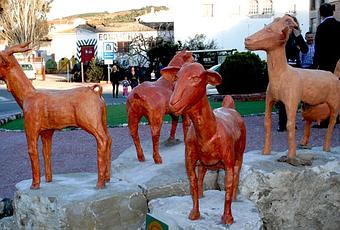 El monumento, que da la bienvenida a todo el que acude a la localidad está compuesto por 7 esculturas de barro que representan a la raza Caprina Malagueña: chivas, cabras y machos cabríos.