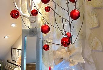 En esta ocasión... Hemos prescindido del tradicional árbol y hemos usado una simple rama, algunas bolas del mismo color y como soporte una damajuana...