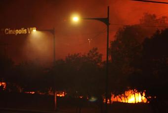 SLP.- La noche de este martes se registró un intenso incendio en una zona de pastizales cerca de la plaza comercial el Dorado.