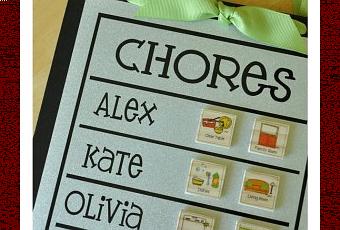 Martha Stewart propone una tabla de pequetareas personalizada con fotos en la que indica las tareas hechas y tareas pendientes de cada uno.