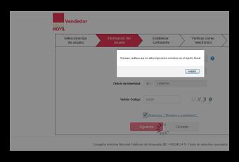 Si lo hacemos a través del mecanismo de “Tienda Virtual”, el mensaje que señala es que “Verifique que los datos coincida con los datos Seniat”, estando todo correcto. Si lo hacemos a través del Punto de Cobro, nos señala “Este usuario no está asociado a esta Tienda Móvil”.