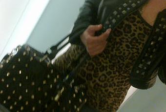 Outfit animal print + cuero + tachas +denim