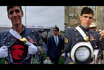 ESTAS si son fotos que no deben dejar de ver. Llegaron al mundo por sendos tuits del Teniente de segunda Spenser Rapone y fueron tomadas en mayo durante su graduación en mayo de 2016 como cadete de la Academia Militar de West Point, la formadora más importante y prestigiosa de los oficiales estadounidenses. Spencer abre su uniforme y ¡Lo increíble! Lleva un pulóver o t/shirt del Che Guevara, el revolucionario y guerrillero cubano/argentino.
