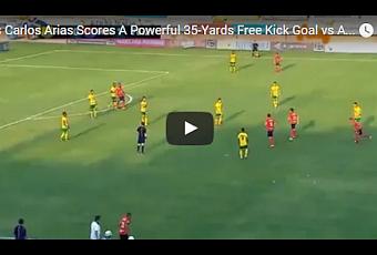 Luis Carlos Arias anotó un increíble gol de tiro libre para Medellín en su triunfo a domicilio por 3-0 al Atlético Huila en el encuentro de la liga colombiana.