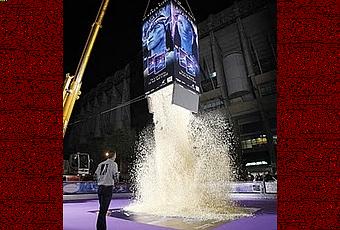 Madrid la caja de palomitas más grande nunca vista: una tonelada de palomitas entre las que los 100 primeros en llegar buscaban premios tan atractivos como un viaje a Tailandia, un televisor