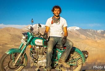Equipado con una cámara panorámica, Alex Chacon registró su travesía de más de 200.000 kilómetros en más de 36 países con la distintiva pose fotográfica.
